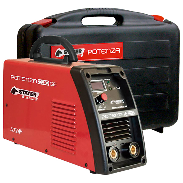 Equipo electrónico para soldadura MMA estándar mediante electrodo recubierto. Programado para soldar con todos los electrodos, incluyendo: básico, alto rendimiento, INOX y rutilo. Preparado para soldadura especial TIG mediante electrodo de tungsteno en atmósfera inerte. Apto para todo tipo de trabajos medianos en los campos de mantenimiento, construcción y estructuras metálicas. Prestaciones incomparables en su nivel de precio: 200A al 60%, voltaje en vacío 76Vdc. Fácil realización de soldadura, incluso para usuarios sin experiencia, gracias al control inteligente STAYER WELDING que incluye las ventajas Hot Start, Arc Force y Anti Stick.