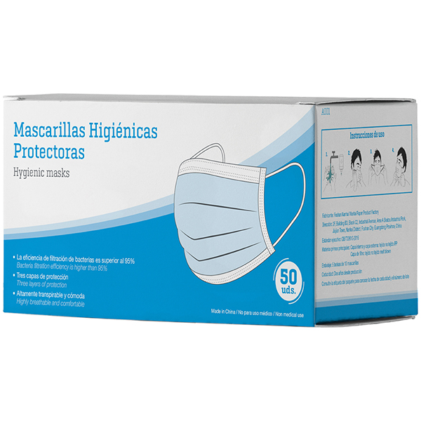 Mascarilla desech.higienica azul 3capas